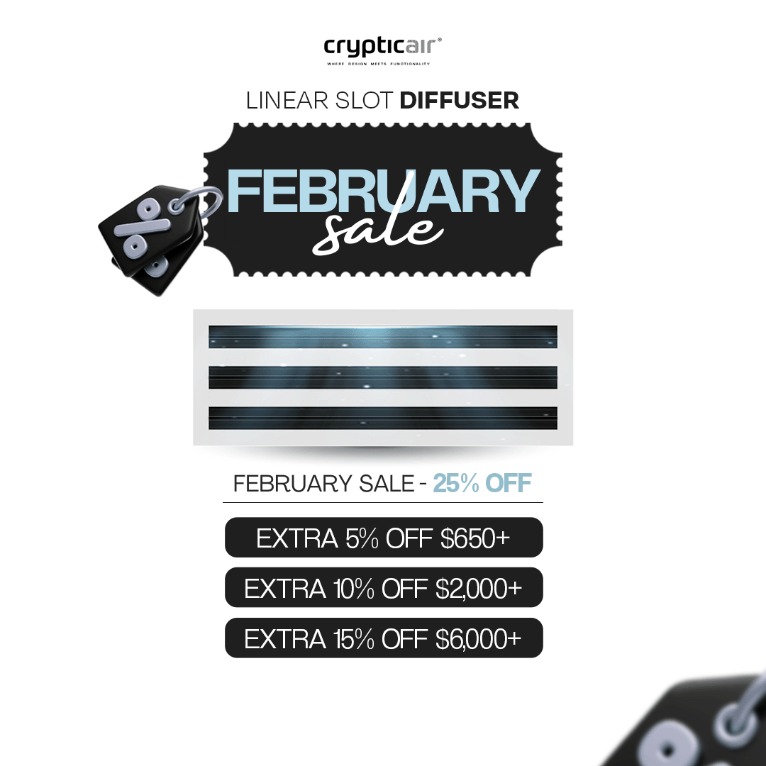 CRYPTIC - 6" Linear Slot Diffuser - 3 Slot - Modern Air Vent Cover for Ceiling, Wall or Floor